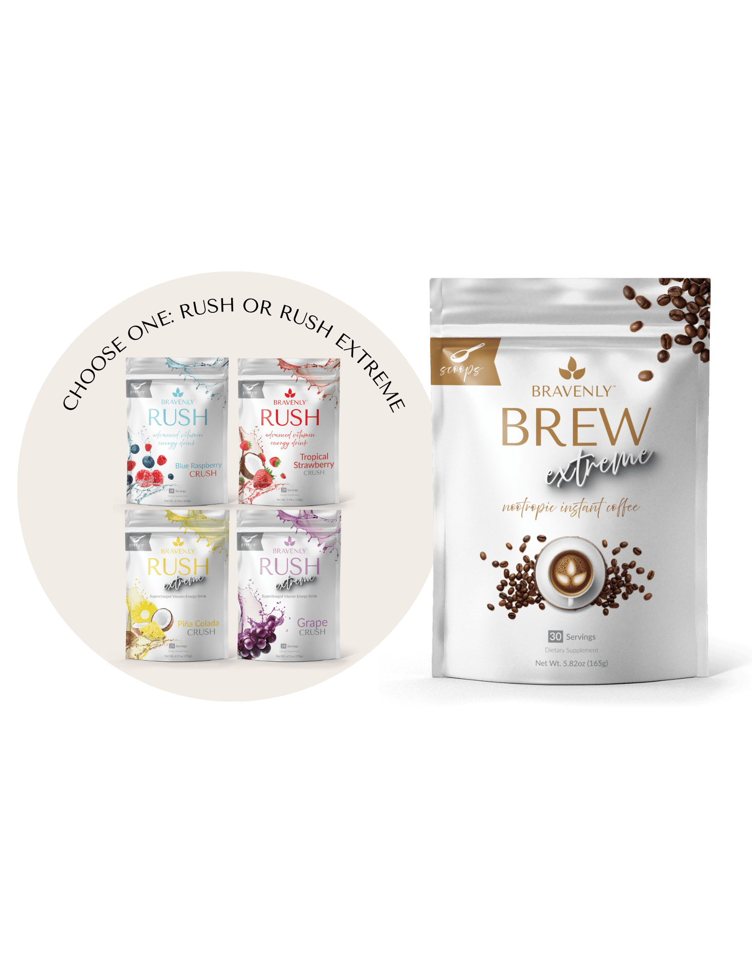 Included: BREW EXTREME and your choice of RUSH or RUSH EXTREME